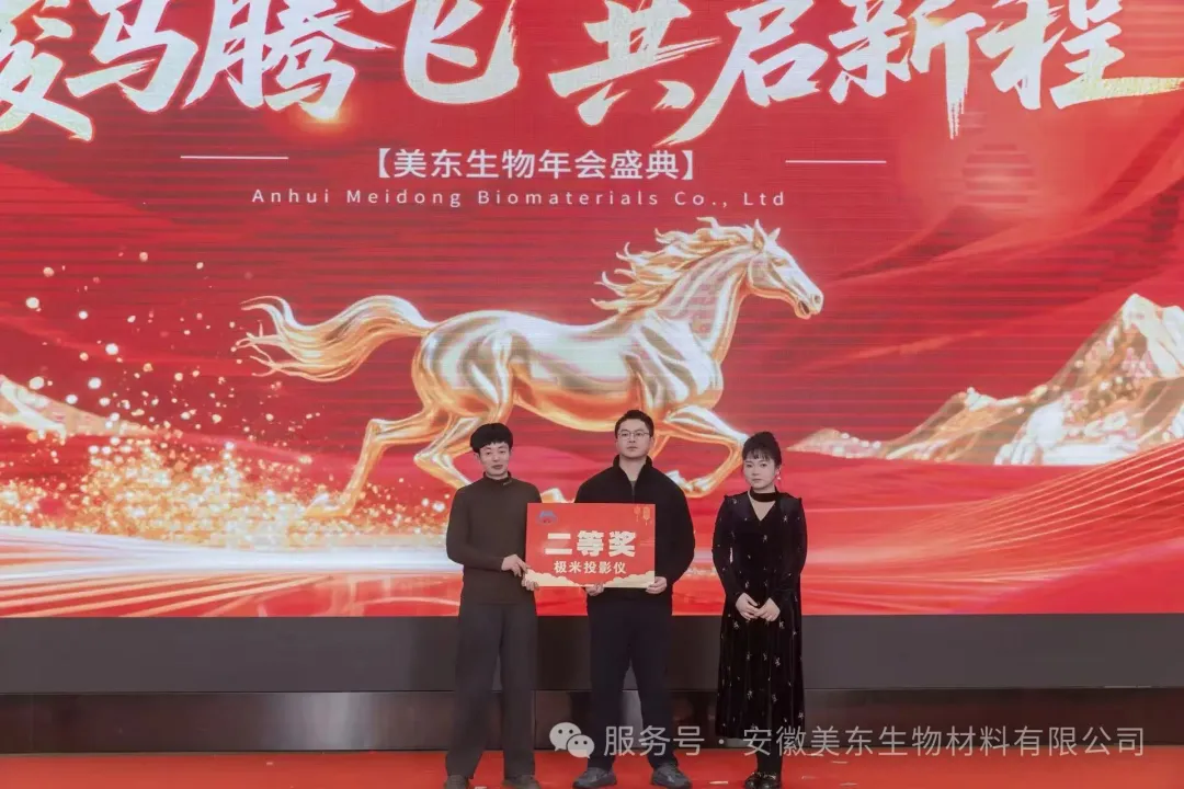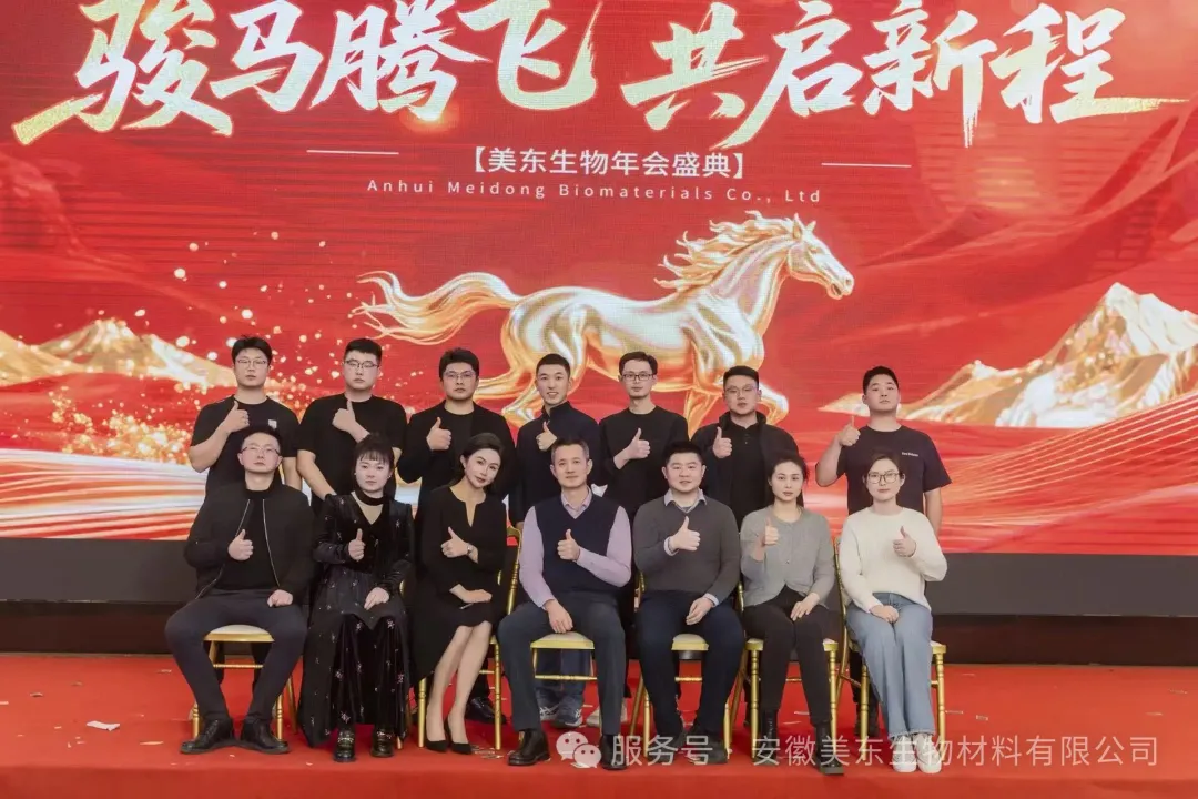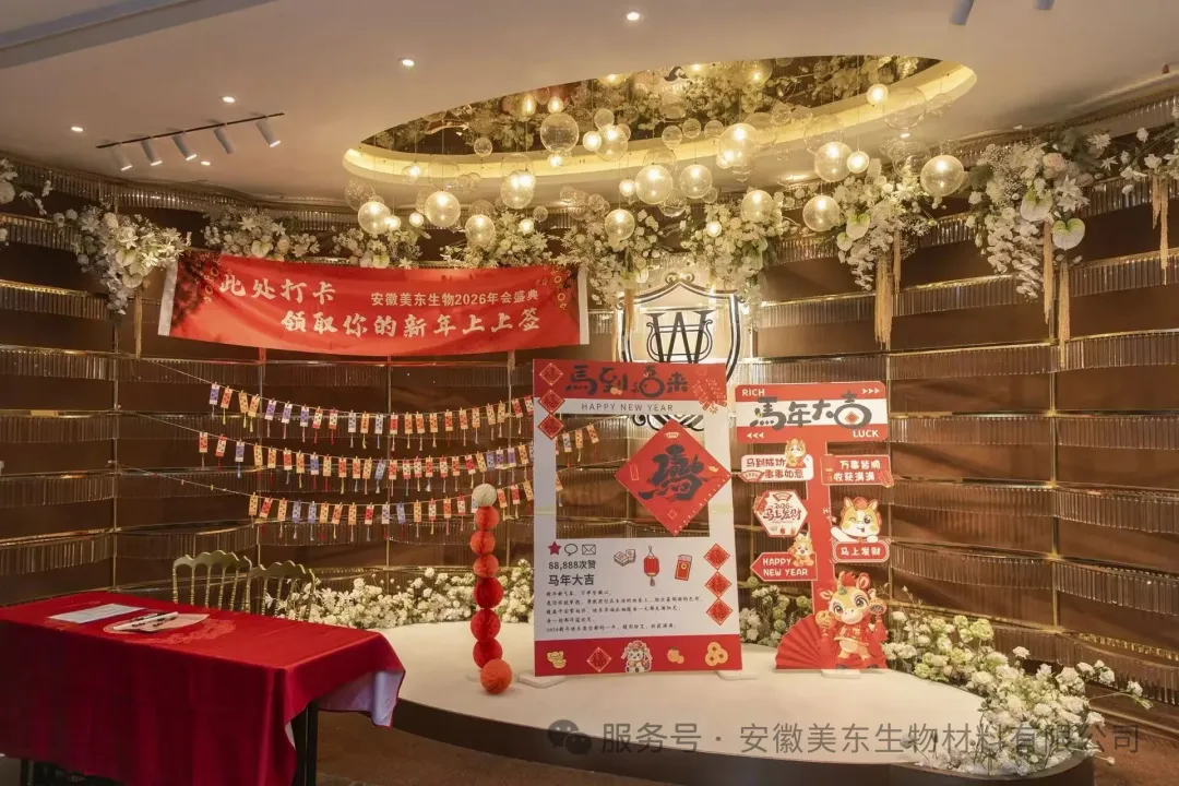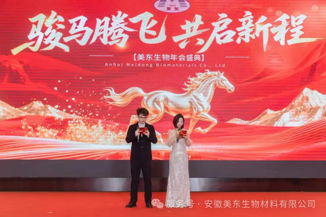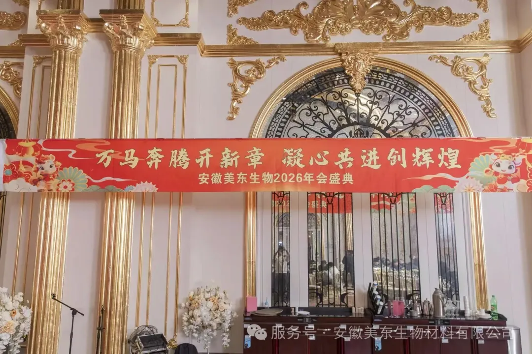 律回春渐,新元肇启。2026年2月11日下午1时30分,在热烈的掌声与期待的目光中,主持人以激昂的开场白正式拉开了安徽美东生物材料有限公司“骏马腾飞,共启新程”主题年会的盛大序幕。一场凝聚汗水、收获喜悦、展望未来的年度盛典精彩上演。