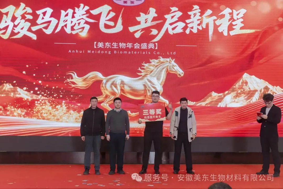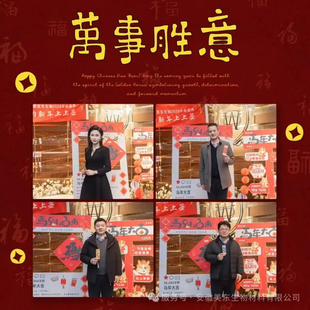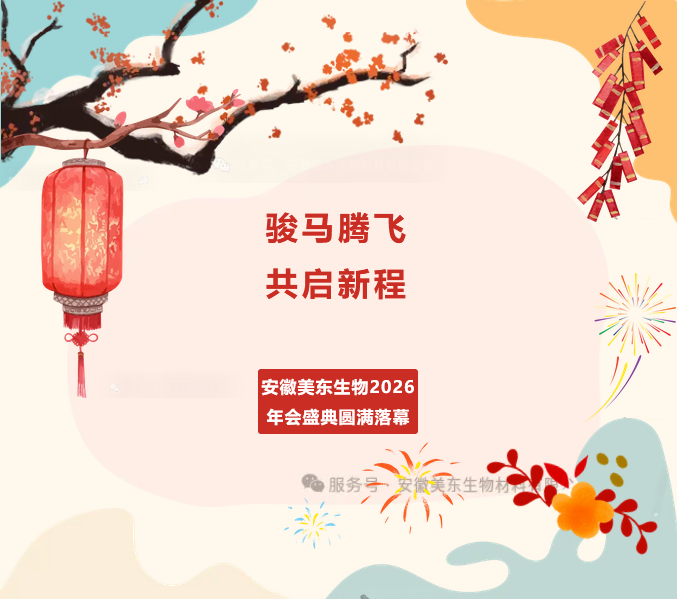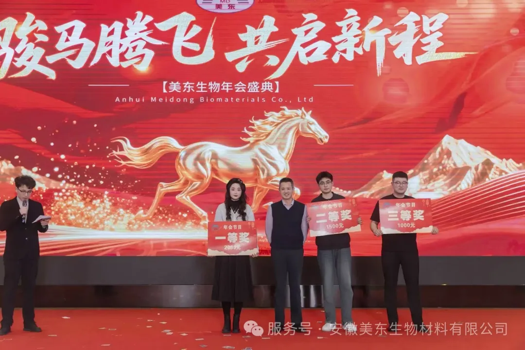 律回春渐,新元肇启。2026年2月11日下午1时30分,在热烈的掌声与期待的目光中,主持人以激昂的开场白正式拉开了安徽美东生物材料有限公司“骏马腾飞,共启新程”主题年会的盛大序幕。一场凝聚汗水、收获喜悦、展望未来的年度盛典精彩上演。