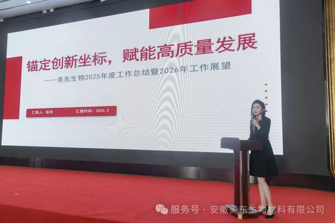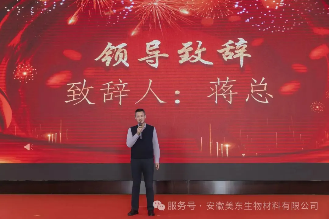 公司总经理蒋总发表了热情洋溢的讲话。蒋总不仅对公司2025年的发展予以高度评价,更以宏阔的视野,擘画了2026年的发展蓝图与战略方向。他激励全体同仁在新的一年里,继续秉持创新精神,聚焦核心优势,携手并肩,向着更高远的目标奋勇前行,并再次送上了对公司未来及每一位员工的美好新年祝愿。展望2026,我们必将以更昂扬的斗志、更坚实的步伐,共同书写安徽美东生物材料高质量发展的崭新篇章!