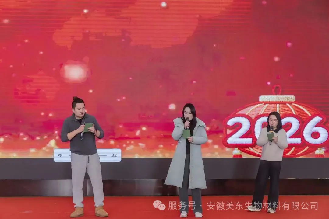 这一夜,是成绩的总结,更是征程的起点。感恩2025,我们风雨同舟,并肩前行;启航2026,我们信心满怀,斗志昂扬。让我们带着年会的喜悦与公司的祝福,继续秉持初心,聚力同心,共同谱写安徽美东生物更加辉煌灿烂的新篇章!