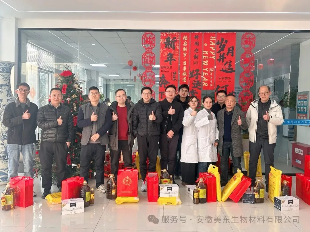 公司向全体员工及家人致以最诚挚的祝福:祝愿大家在新的一年里,阖家欢乐,身体健康,工作顺利,万事如意!让我们继续携手并肩,同心同行,共创美东生物更加美好的明天!
